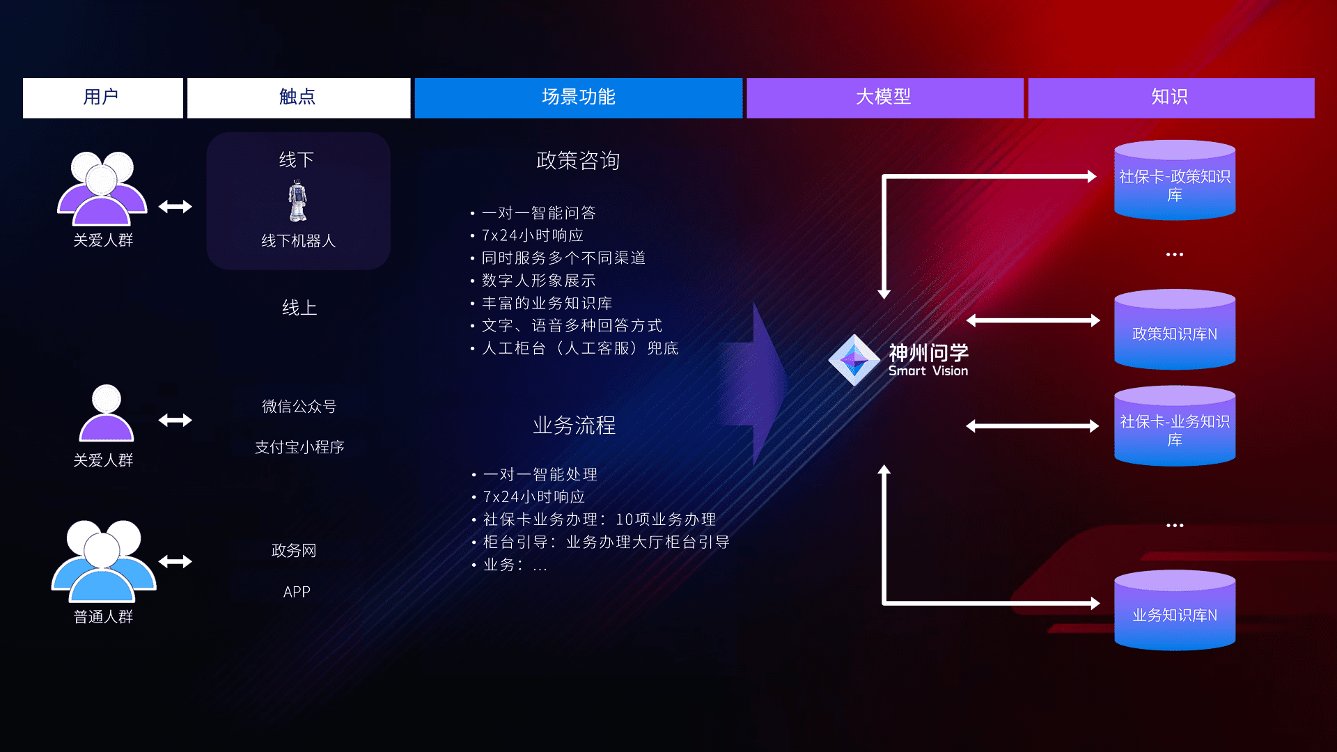 • 线上线下全覆盖:线上提供微信公众号、、支付宝小程序、、、政务网、、app多种渠道,,,,与线下机器人形成完整服务体系。。